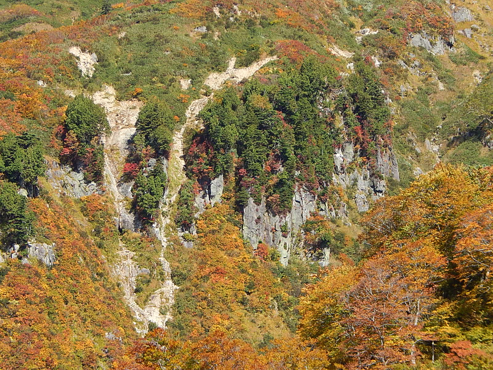 眼下、そして左右の紅葉を眺めながら下りていきます。